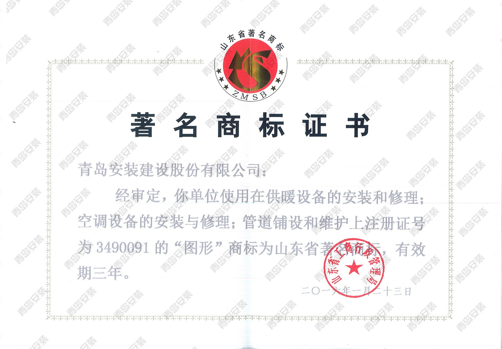 山東省著名商標證書